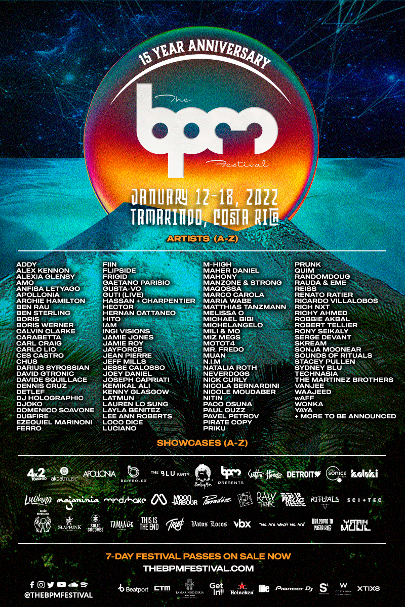Festejando su aniversario número 15, THE BPM FESTIVAL llegará en el 2022 a las exuberantes playas y selvas llenas de increíbles escenarios naturales de arena blanca, azul claro del agua e impresionantes atardeceres que brinda la “ciudad del surf”, Tamarindo – COSTA RICA.